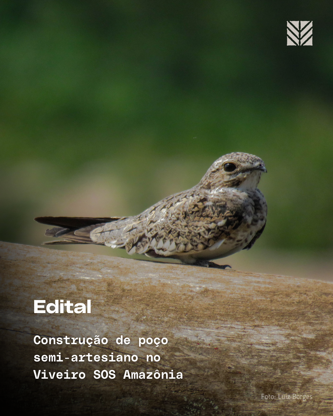 A SOS Amazônia abre edital para contratação de empresa especializada para executar a perfuração de poço semi-artesiano, com 100 metros de profundidade e diâmetro mínimo de 6 polegadas, a ser implantado nas imediações do Viveiro SOS Amazônia, localizado no ramal dos Arinos, km 4,4, em Capixaba, Acre.