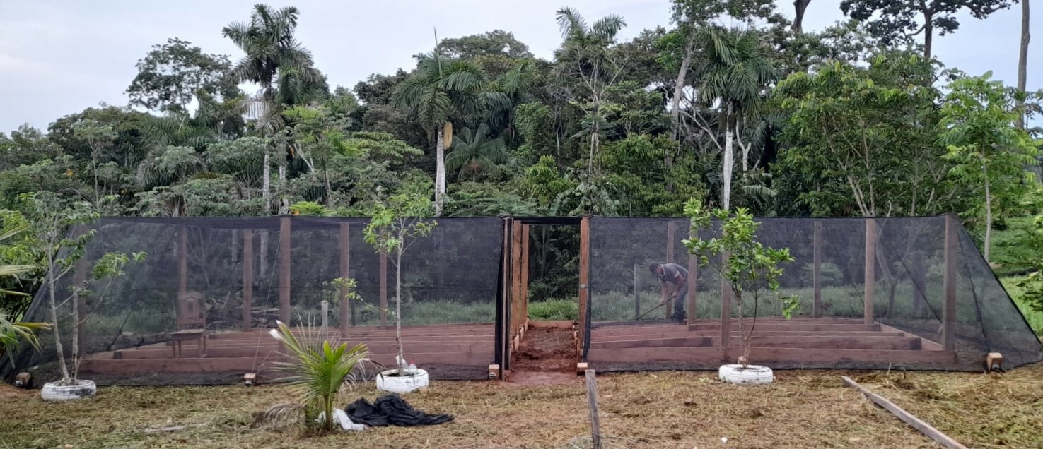 To ensure the success of forest restoration projects and improve logistics in less accessible regions, SOS Amazônia builds communitarian sanctuaries to boost seedling production. The goal is to empower families with the tools to expand their restoration areas and diversify the species they cultivate—both ecological and economically valuable—allowing them to commercialize surplus seedlings in local markets.