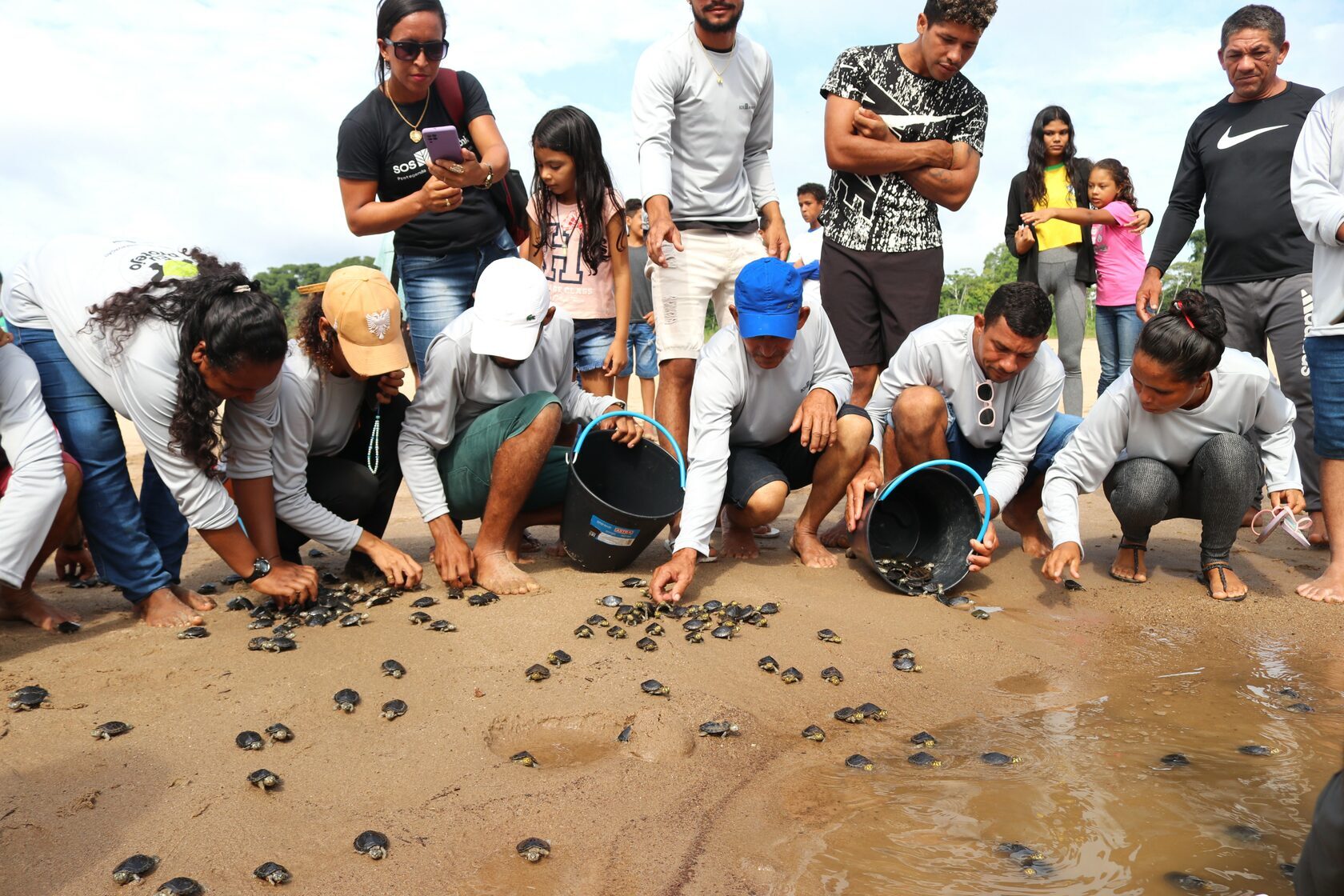 Aiming to increase chelonian populations, the project promotes participatory community management through environmental education, training of riverine families, monitoring of threatened beaches, care of recently born chelonians, and their release into safe areas. In 2023, six capacity-building workshops trained 31 monitoring agents to oversee 47 demarcated beaches within four Conservation Units. As a result, over 2,000 baby chelonians were returned to nature in the Alto Juruá Extractivist Reserve and Riozinho da Liberdade in the Carlota Community, Cruzeiro do Sul.