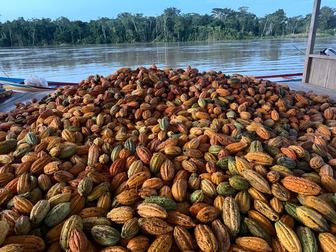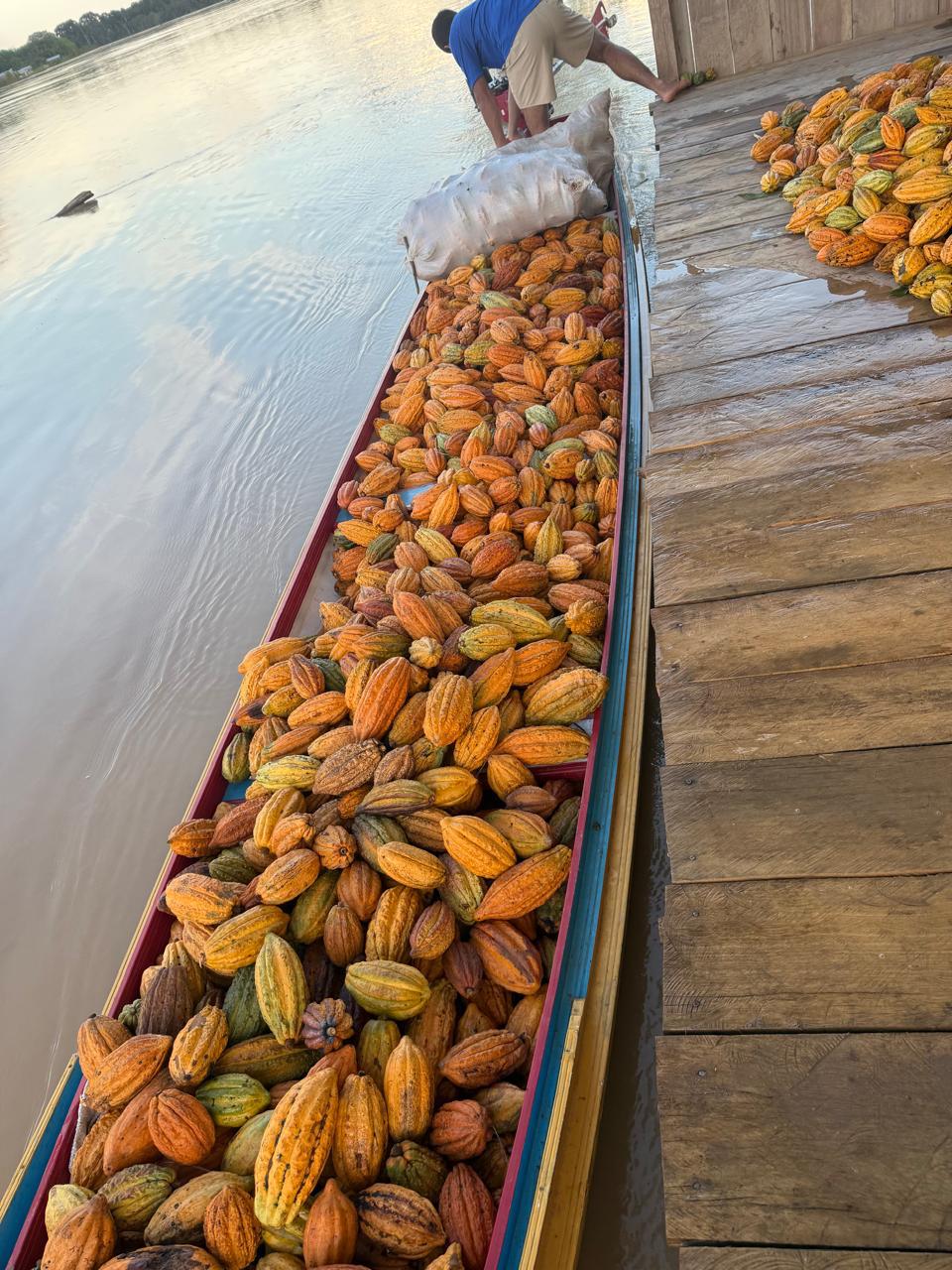 Em pleno inverno amazônico, período de chuvas intensas na região, 12 famílias da comunidade Novo Horizonte, às margens do rio Juruá, no Amazonas, se dedicam à colheita do cacau silvestre. Até o momento, foram coletados aproximadamente 6.300 frutos, o que deve resultar em cerca de 150 quilos de amêndoas beneficiadas na própria comunidade.